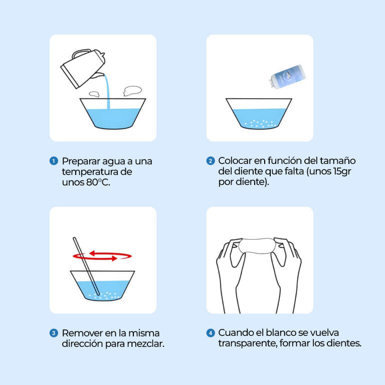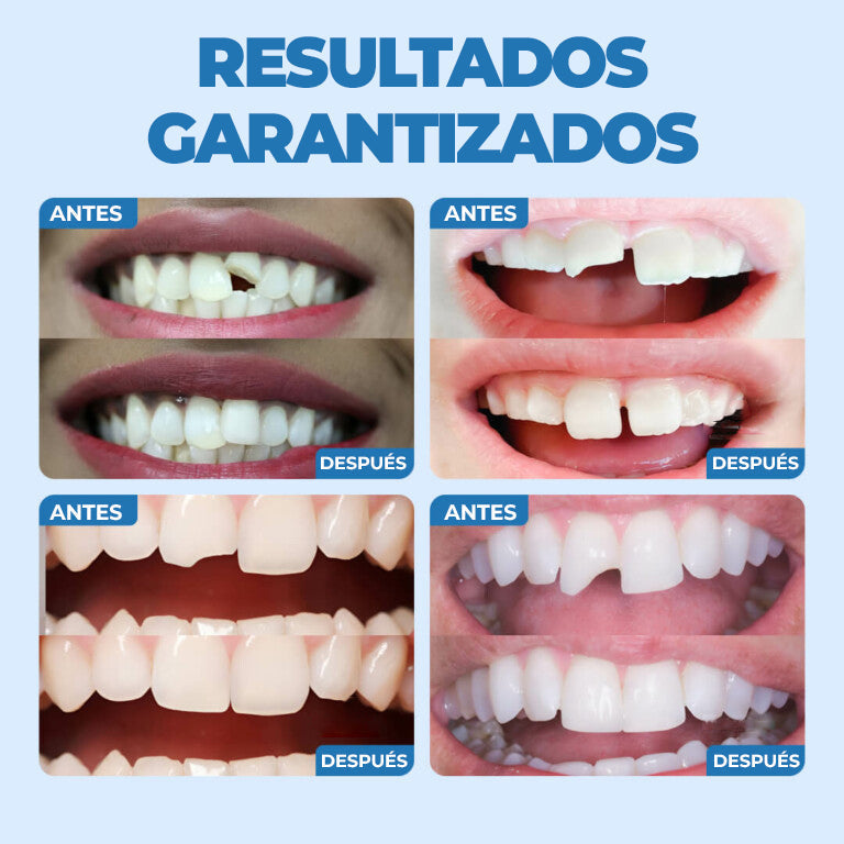 Recupera tu confianza con una sonrisa deslumbrante en solo 10 minutos. Ideal para reemplazar dientes faltantes o reparar dientes rotos, este producto te ahorra mucho dinero al evitar tratamientos costosos. Es Fácil de poner y quitar, sin riesgos y extremadamente duradero.